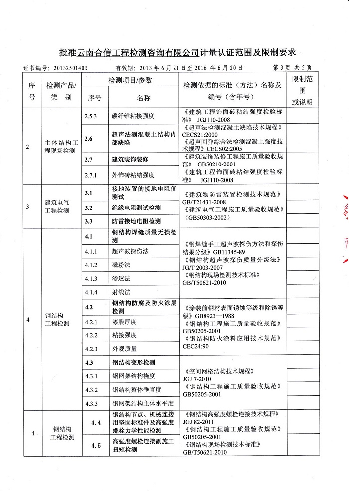 云南合信工程檢測(cè)咨詢有限公司鋼結(jié)構(gòu)結(jié)構(gòu)工程檢測(cè)主要能力為: