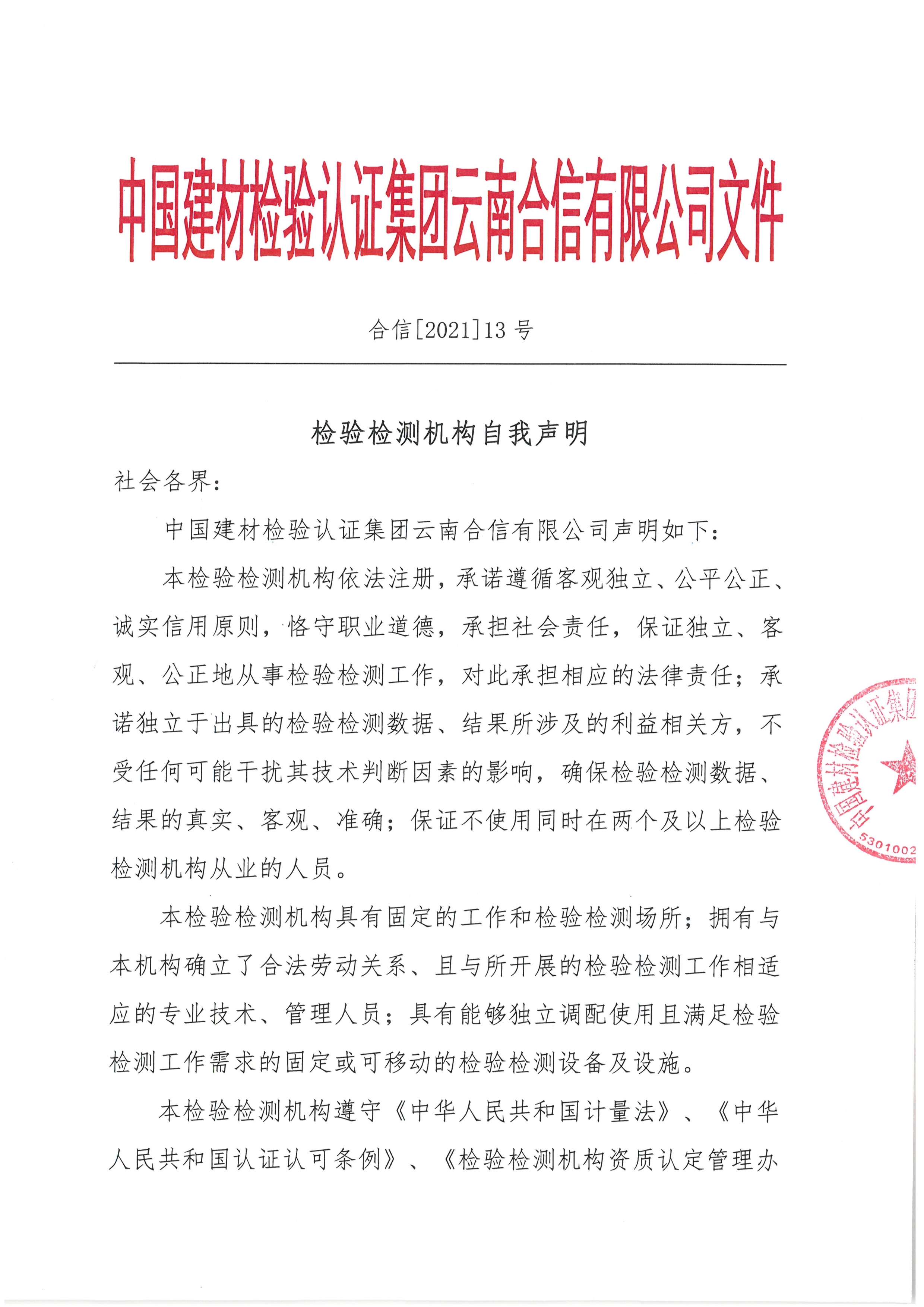 檢驗(yàn)檢測(cè)機(jī)構(gòu)自我聲明