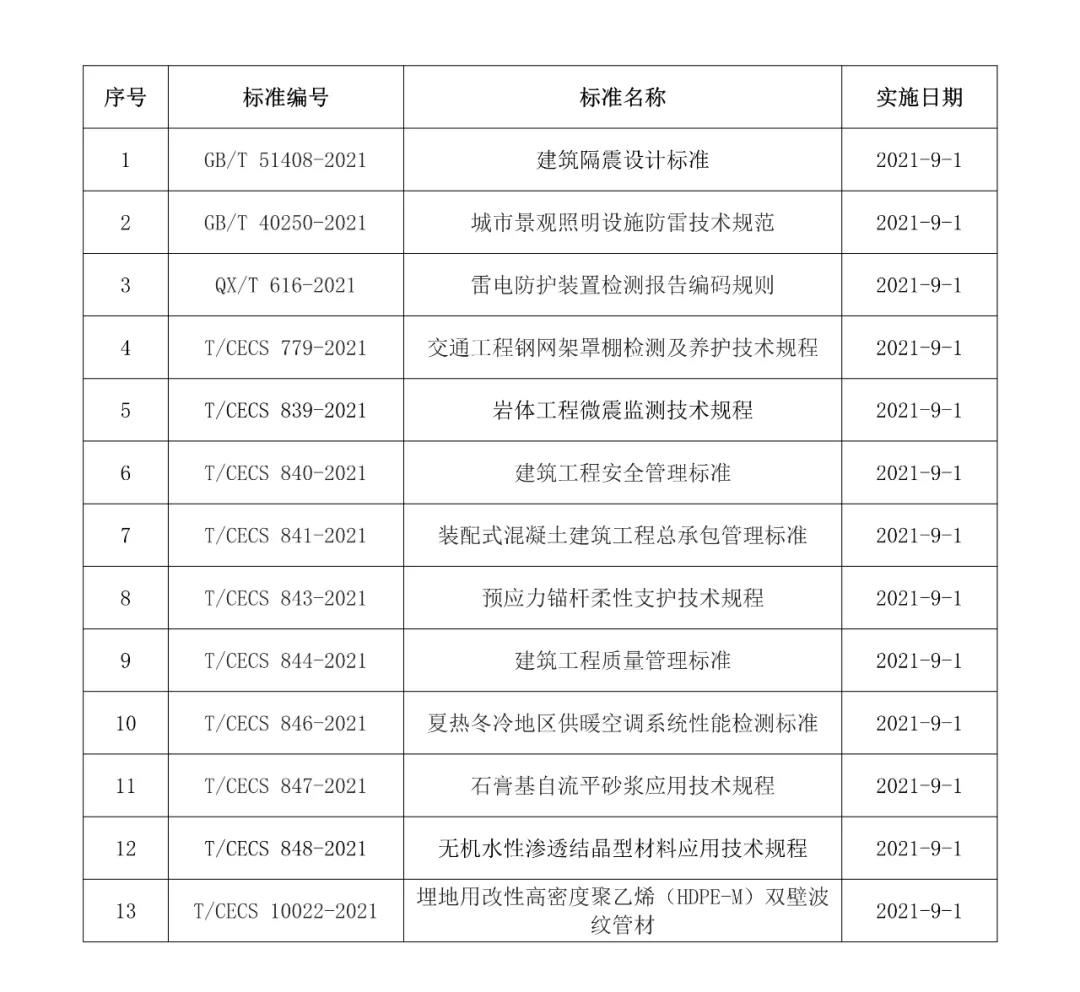 2021年9月開始實(shí)施的工程建設(shè)標(biāo)準(zhǔn)