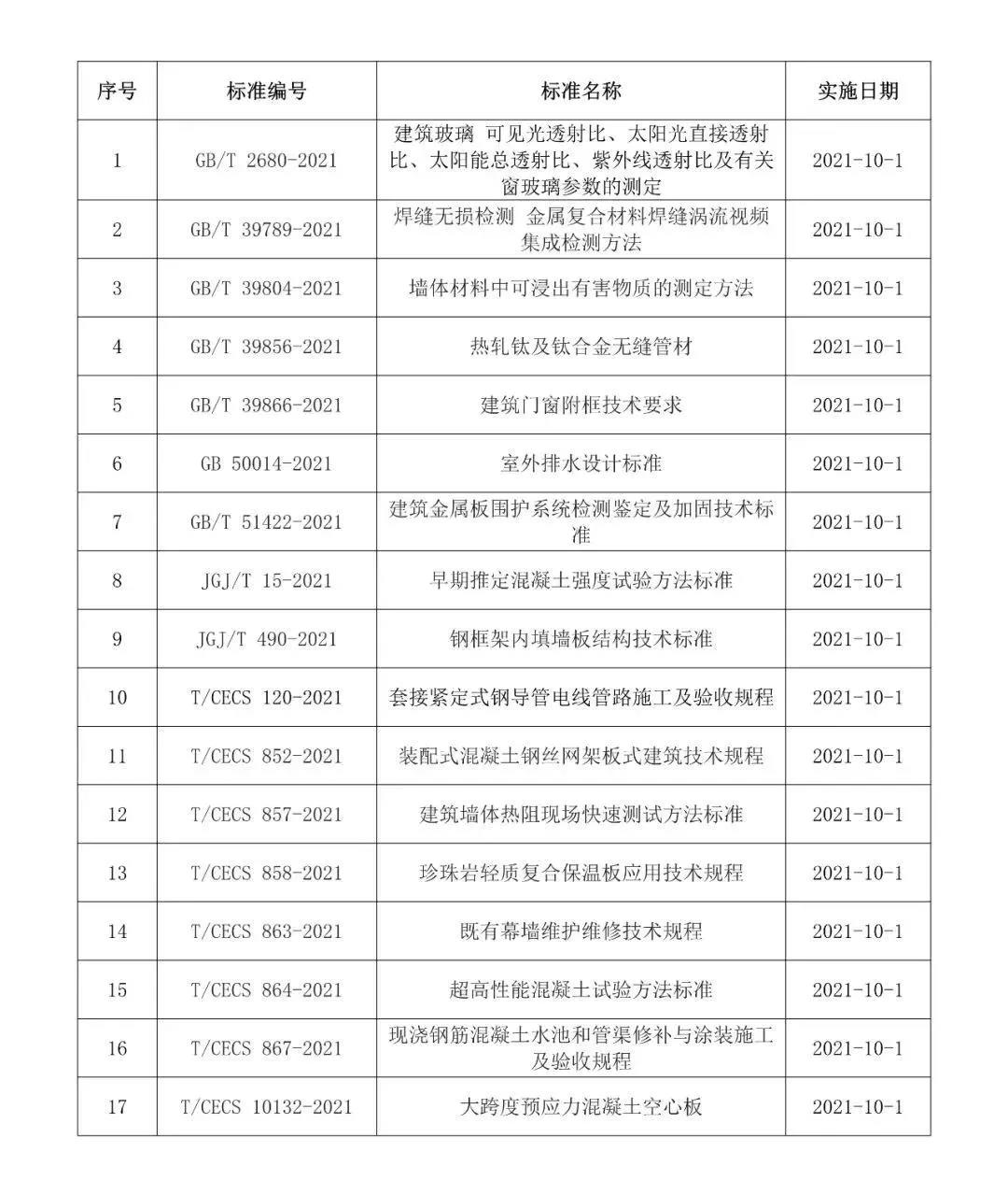 2021年10月開始實施的工程建設(shè)標(biāo)準(zhǔn)