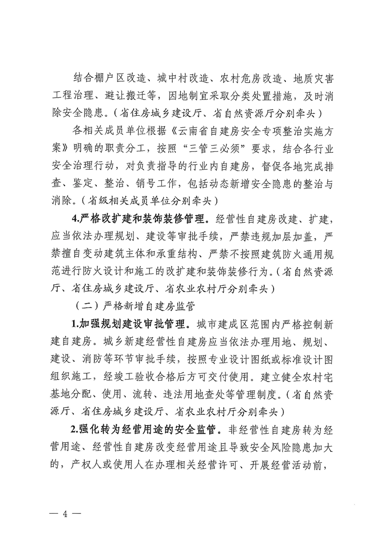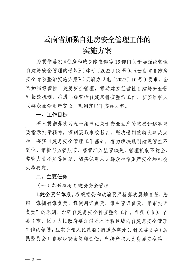 云南省自建房安全專項整治工作領導小組辦公室關于印發(fā)《云南省加強自建房安全管理工作的實施方案》的通知