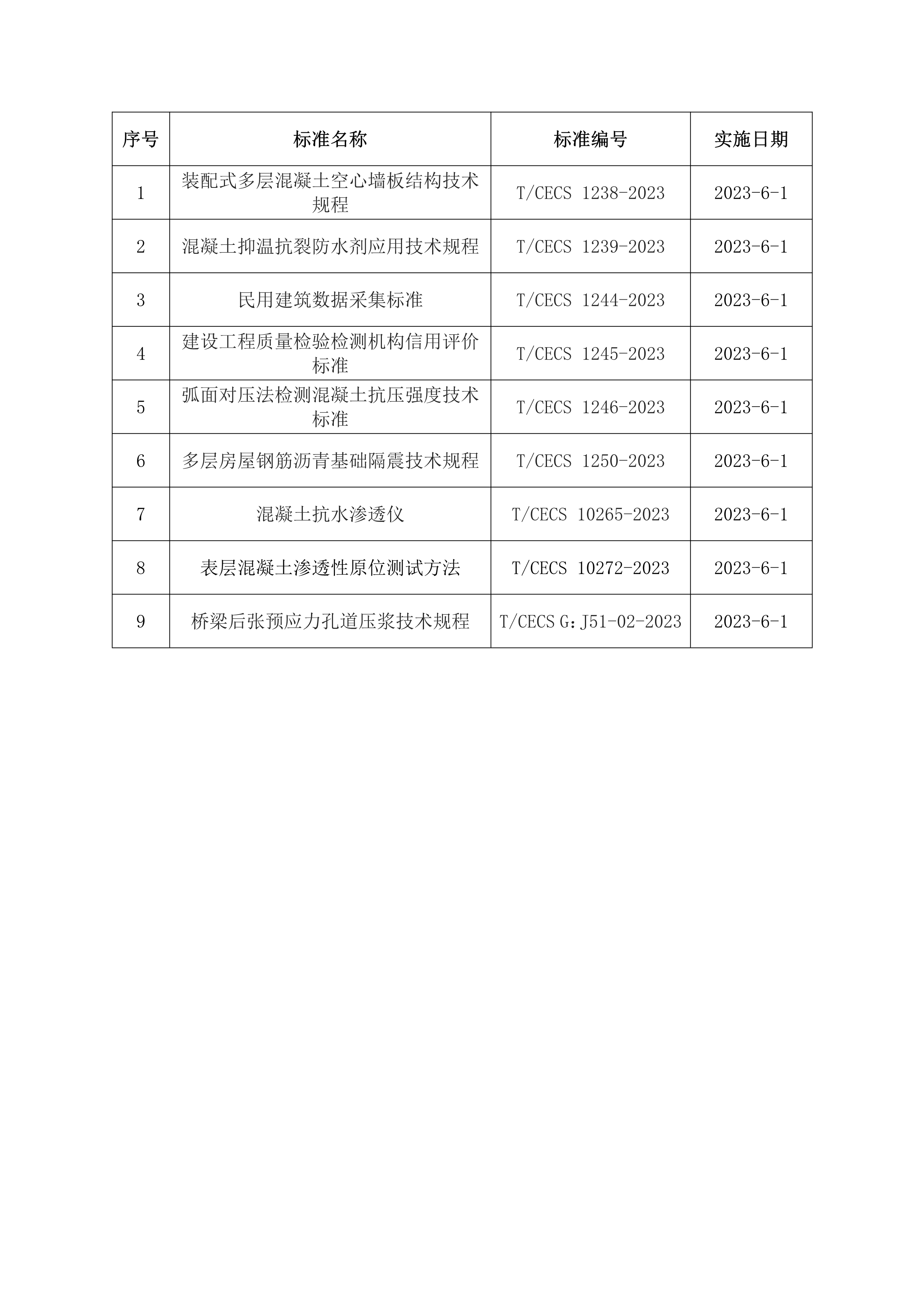 2023年6月開(kāi)始實(shí)施的工程建設(shè)標(biāo)準(zhǔn)